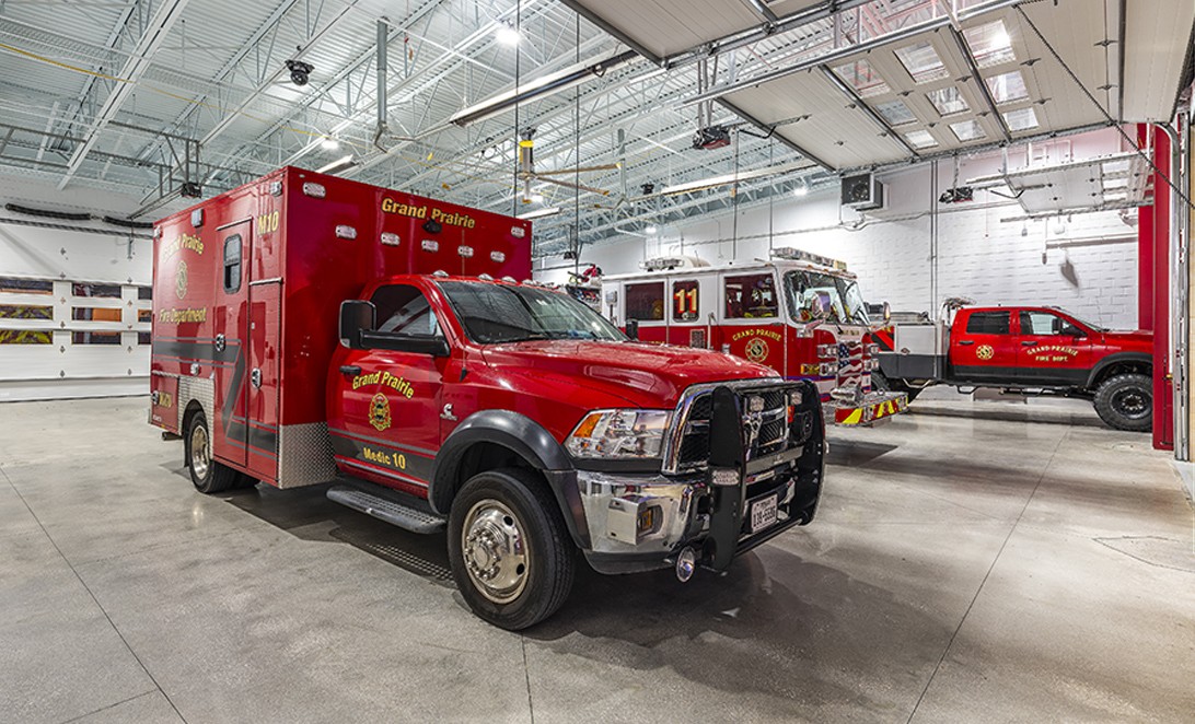 Martinez Architects is developing a new fire station for the Grand Prairie community, featuring modern design for gender-friendly living conditions, physical fitness, PPE storage, and cancer prevention protocols. The project includes two apparatus bays, a fuel island, and coordination for a radio tower.
