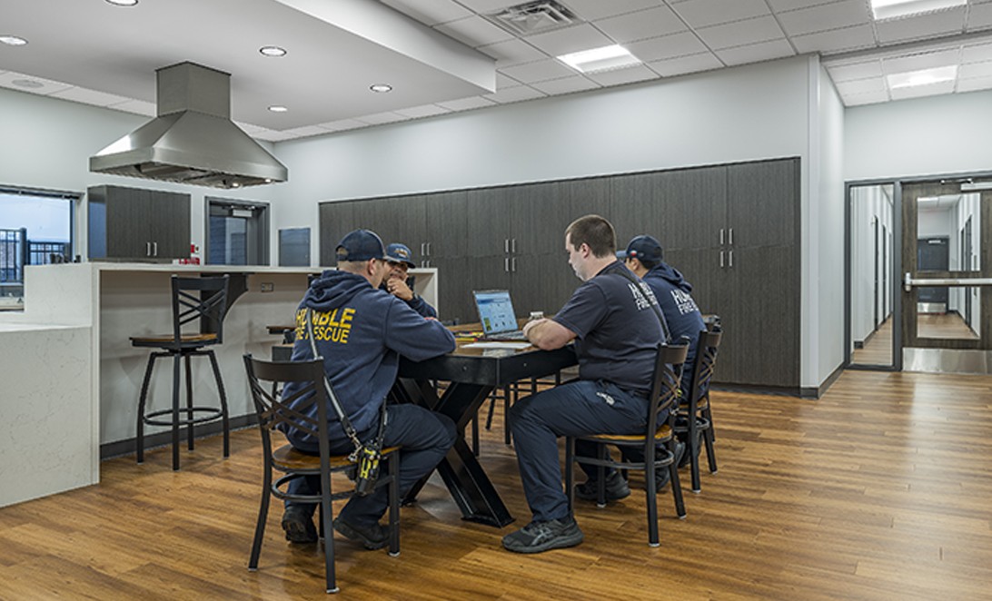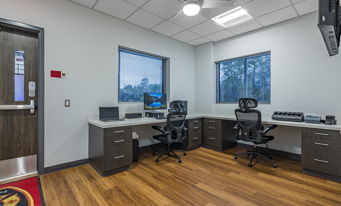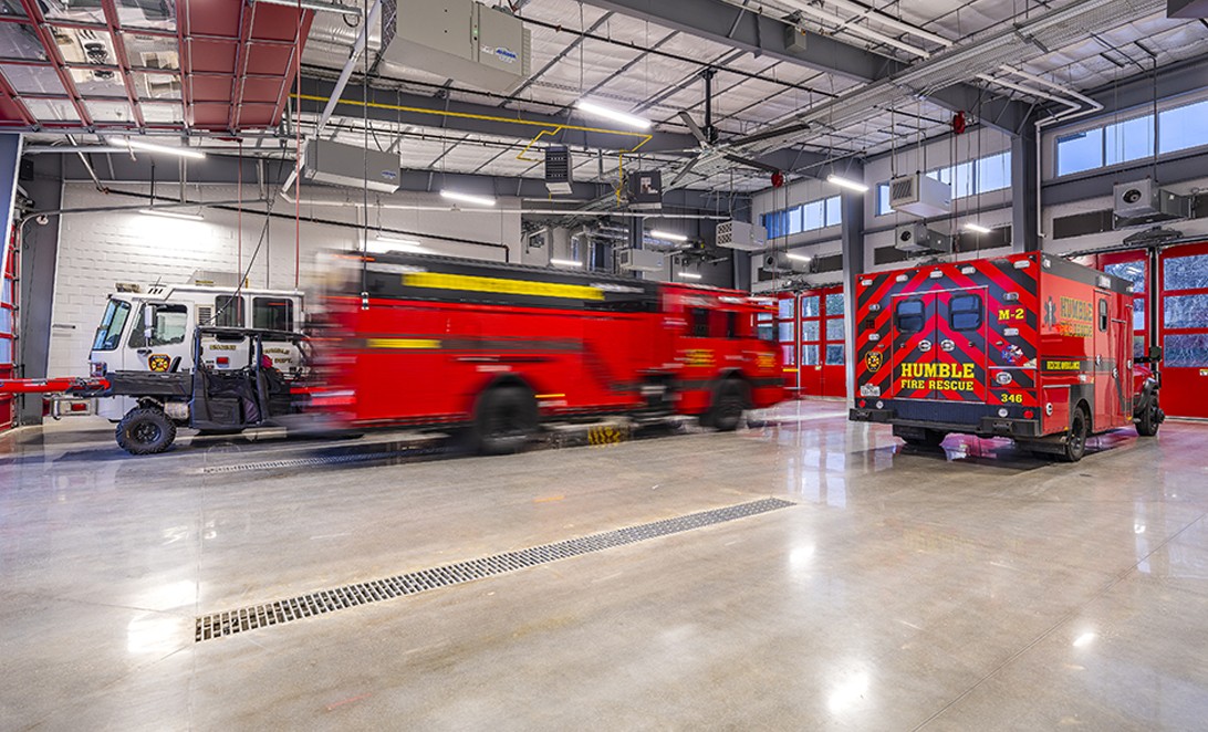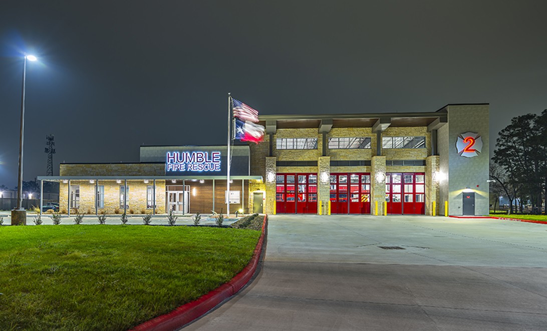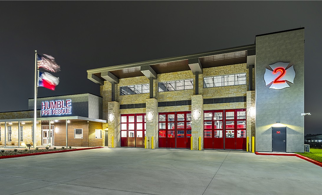 Humble Fire Station 2 is a recently completed facility designed to enhance community fire and emergency services. The station features three drive-through apparatus bays for efficient vehicle access, a training classroom for ongoing education, and an open-concept living area that fosters teamwork among personnel. Individual dorm rooms provide private sleeping areas, each with convenient locker access from both the hallways and the living spaces. Additionally, the design includes an integrated training tower, allowing firefighters to practice essential skills in a controlled environment. This modern station aims to support the city of Humble's commitment to public safety and effective emergency response.