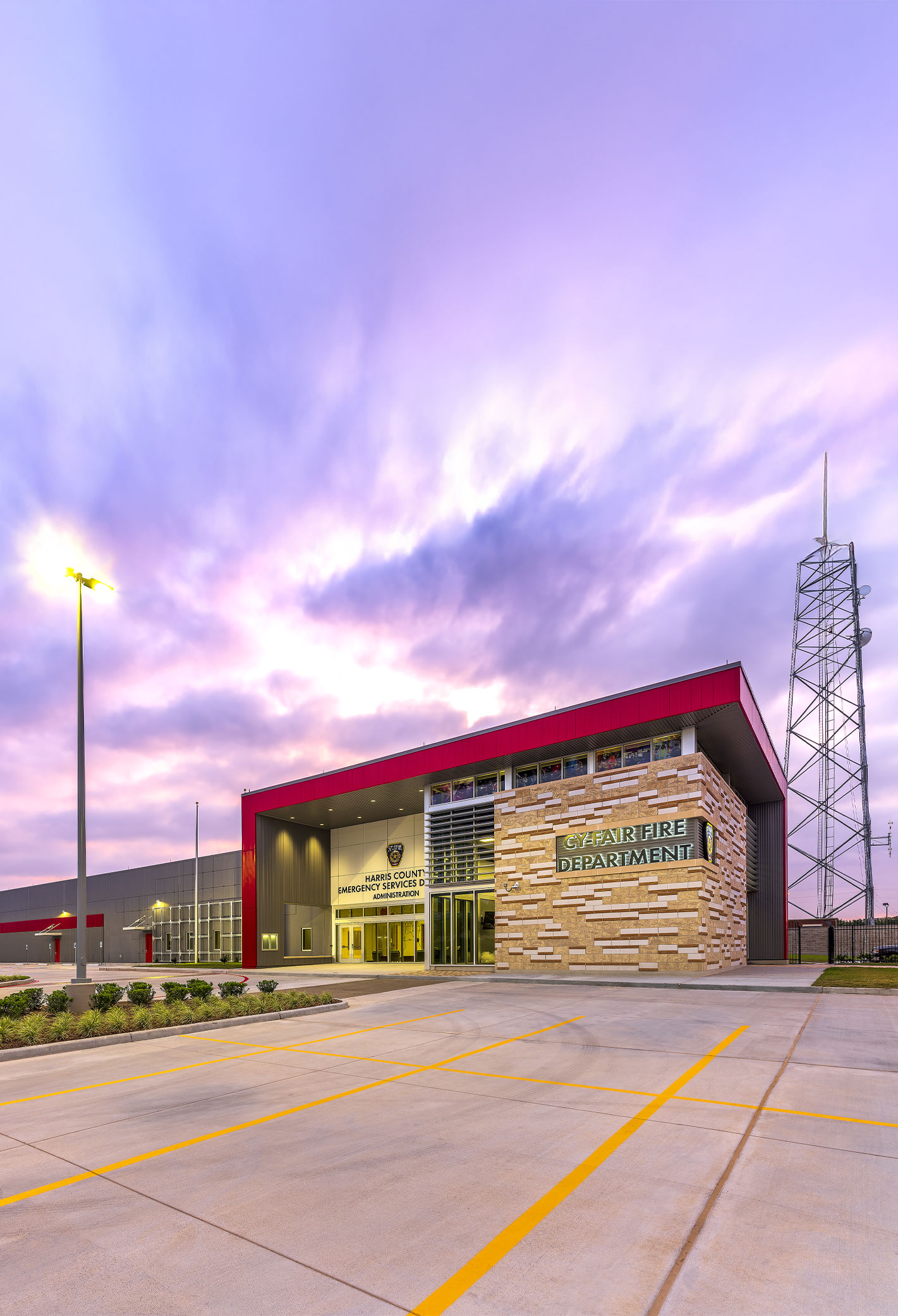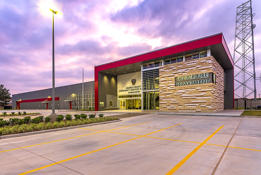 The new Operations and Administration Building serves the Houston community, providing essential facilities for emergency services, including dispatch, training, and fitness areas, designed to enhance operational efficiency and support for local emergency responders.