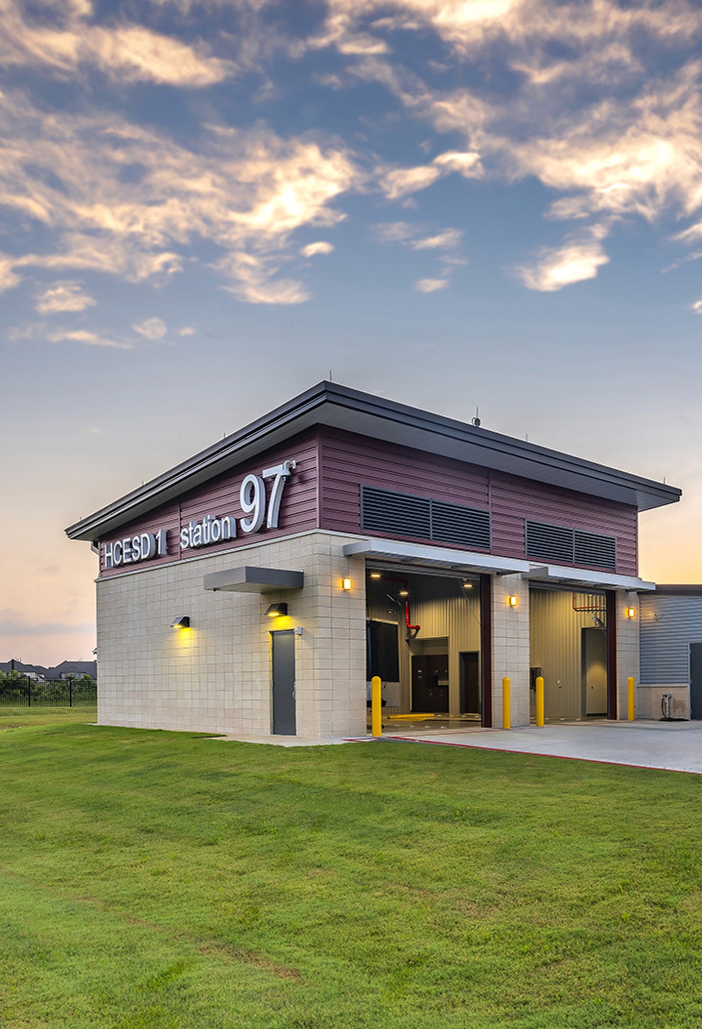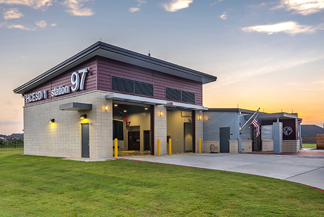Station 97 provides emergency medical services for the community of Humble, featuring a durable design for efficient responses, with coordinated utilities and security shared with a nearby fire station.