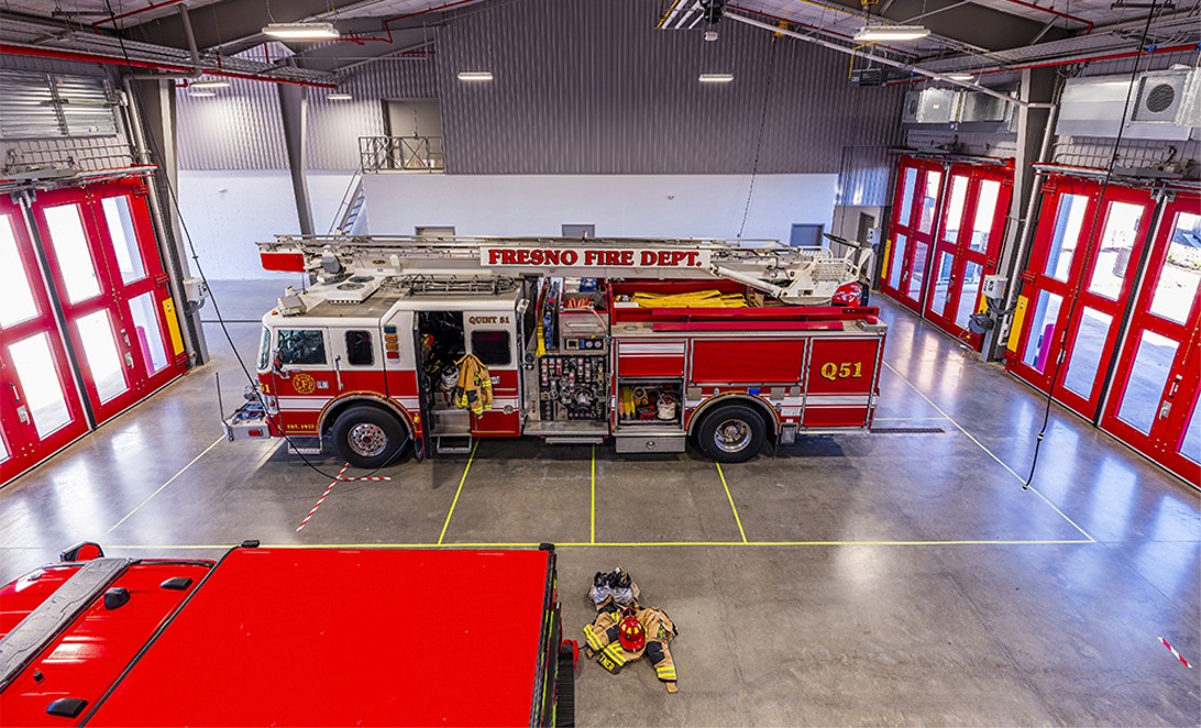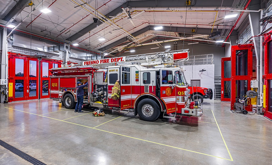 Fire Station 51 serves the community of Fresno, designed as a modern emergency response facility. It features efficient layouts for emergency response, quality living spaces, and collaborative areas, all while adhering to strict design guidelines. The station includes essential amenities for firefighters, ensuring a balance of functionality and comfort.
