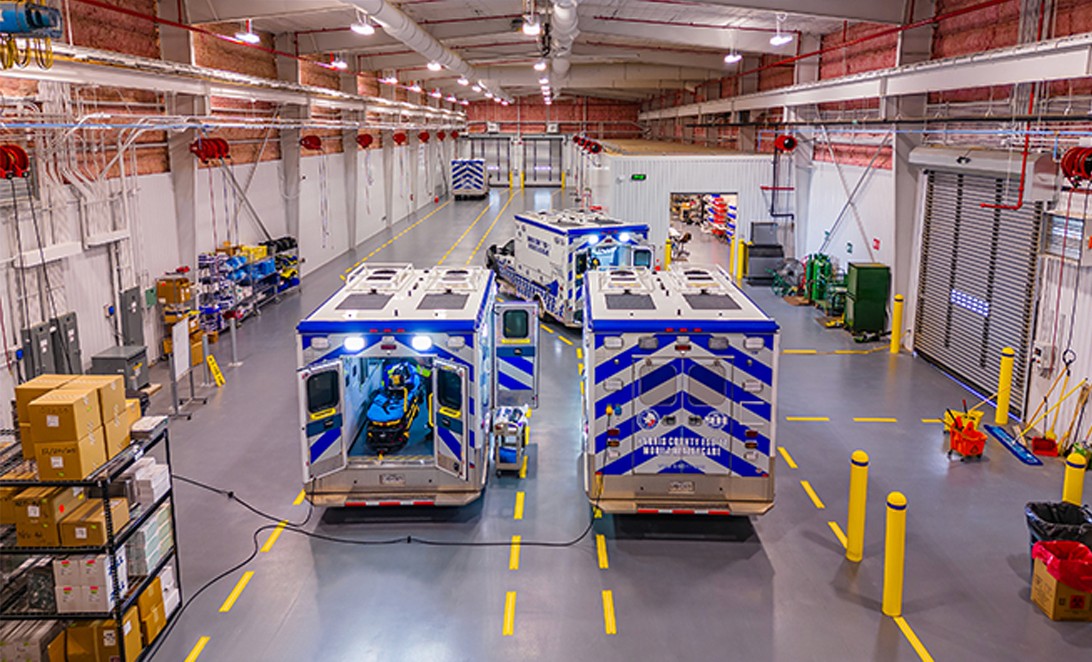 This project serves the community in Spring, transforming a former pipe lay-down yard into a new headquarters for emergency services, including administration, dispatch, and ambulance deployment, while providing essential facilities for EMTs to support efficient emergency response.