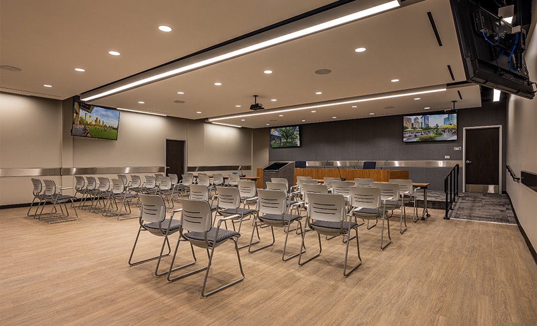 The Harris County ESD 11 Admin Building serves the Spring community as a mobile healthcare central campus. This facility transforms a former pipe lay-down yard into a headquarters that supports administration, 911 dispatch, emergency operations, fleet maintenance, and ambulance deployment. It is designed to efficiently stock EMS supplies, while providing kitchen, break, and restroom facilities for EMTs who are deployed daily. The design overcame various physical constraints from existing structures, ensuring compliance with life-safety codes and enhancing operational capabilities for emergency response.