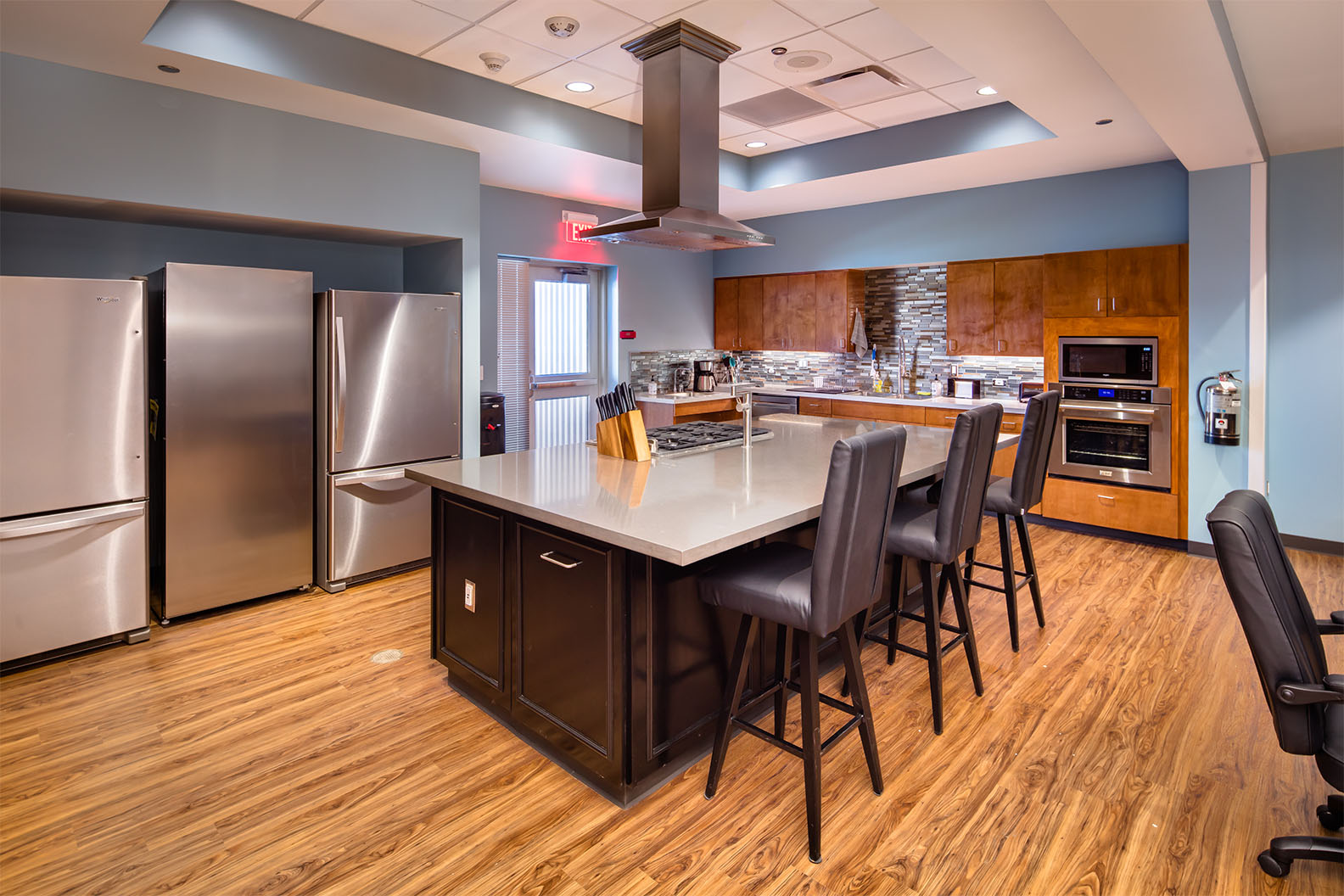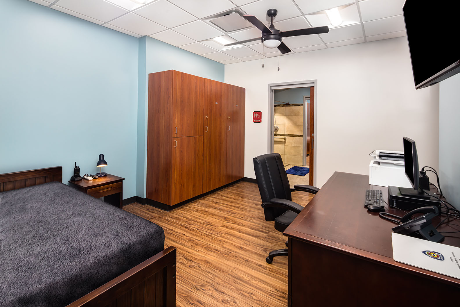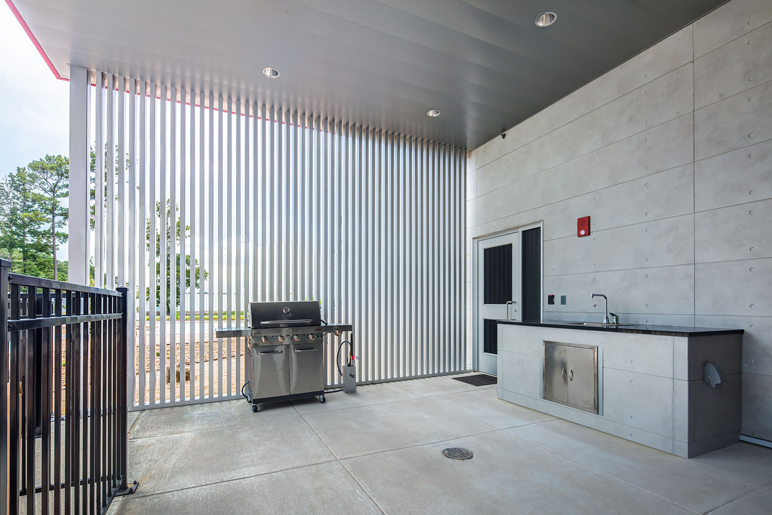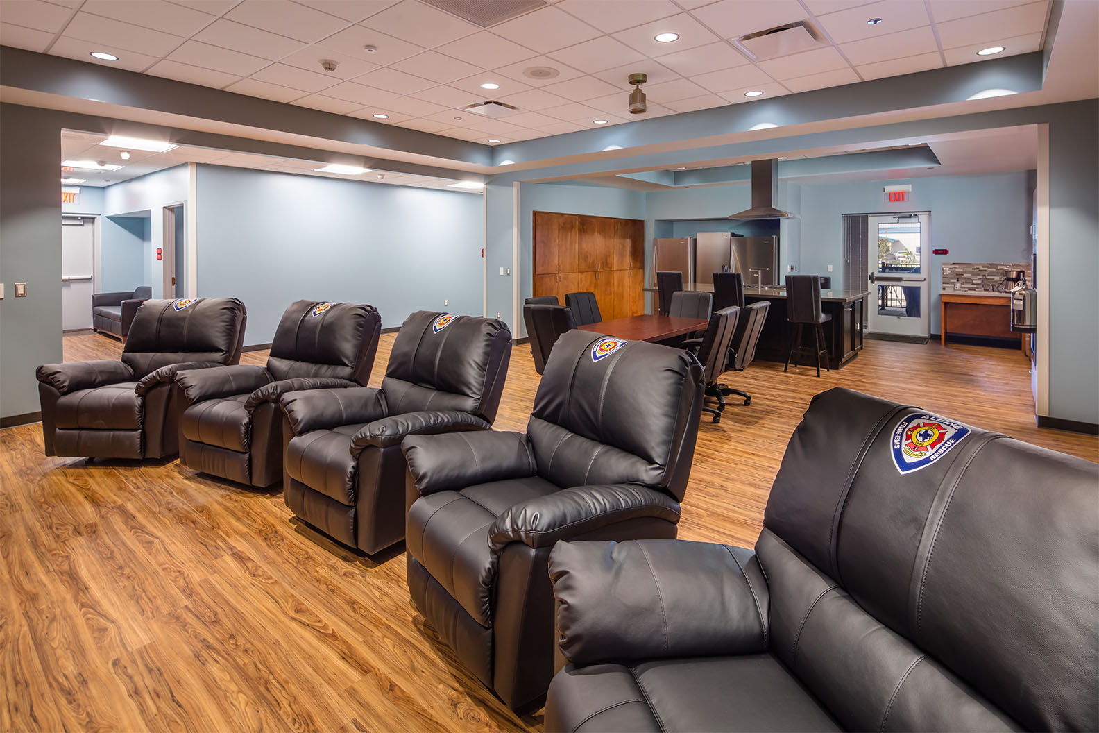 Harris County ESD 24's Fire Station 41 in Houston features innovative pre-cast concrete tilt-wall construction, providing a durable exterior while enhancing cost efficiency. The design includes a striking floating red box that serves as a prominent community landmark. The layout emphasizes functionality with access-controlled entries, an open-concept day room, and strategically designed sleeping accommodations that facilitate quick access to restrooms. The station incorporates modern amenities, such as an automated exhaust removal system and a communal kitchen that fosters community interaction. Additionally, the low-maintenance landscaping complements the station's contemporary aesthetic, making it a vital resource for the Houston community.