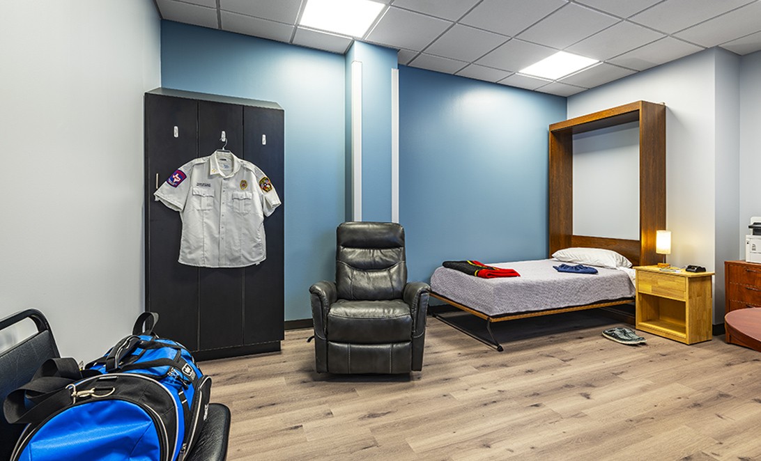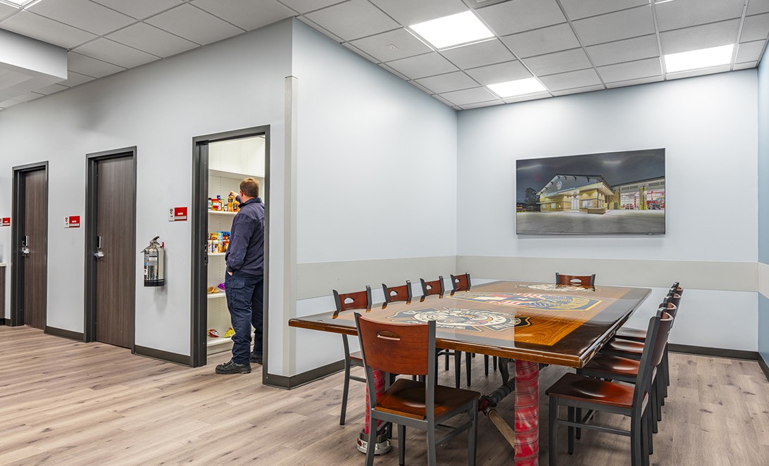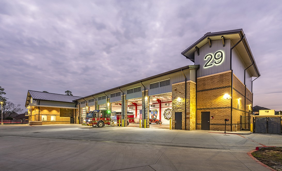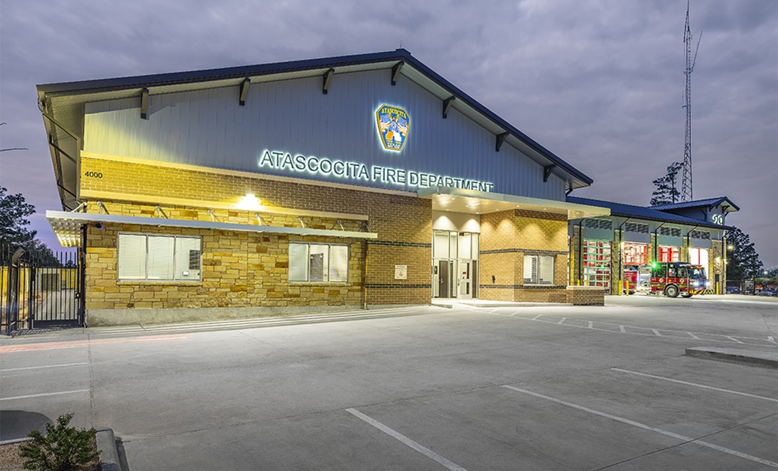 Innovative design solutions transformed a challenging site into a functional fire station for the Atascocita community. The layout prioritizes crew wellness and operational efficiency, featuring communal areas, individual dorms, and a dedicated decontamination restroom. A public meeting room fosters community engagement while maintaining operational security, serving as a vital resource for local residents.